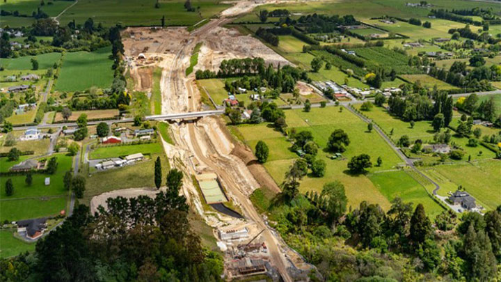 From 2016 until 2022, the project has had 7500 people work on it, constructing 22km of expressway, 16 bridges, a large underpass, 5 interchanges and 5.5 million cubic metres of earthworks, with the overall cost of the Hamilton section was NZ$837M.